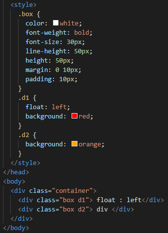 1) float 요소는 일반적인 흐름 상에 존재하지 않아 flaot 요소의 높이를 알 수 없기 때문에 부모 요소 이후에 위치하는 요소의 정렬에 문제를 유발