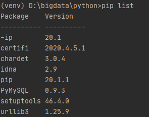 3) 터미널에 pip list 입력하여 설치 확인, 또는 settings에서 확인 가능